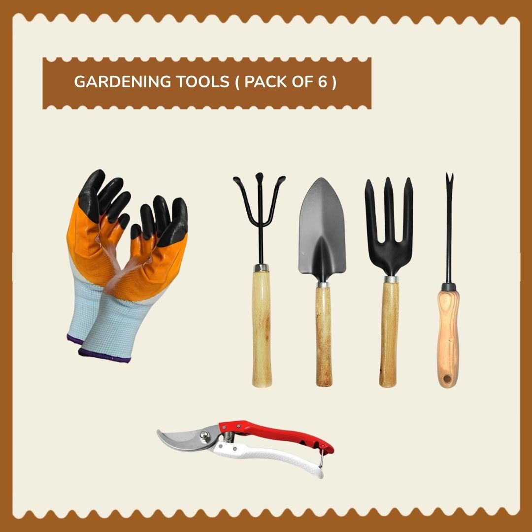 Complete 6 in 4-1 Kit: Includes 4 PCS Garden Tools (hand rake, trowel, cultivator, weeder), SS White/Red Flower Cutter (pruner), and breathable Garden Latex Gloves