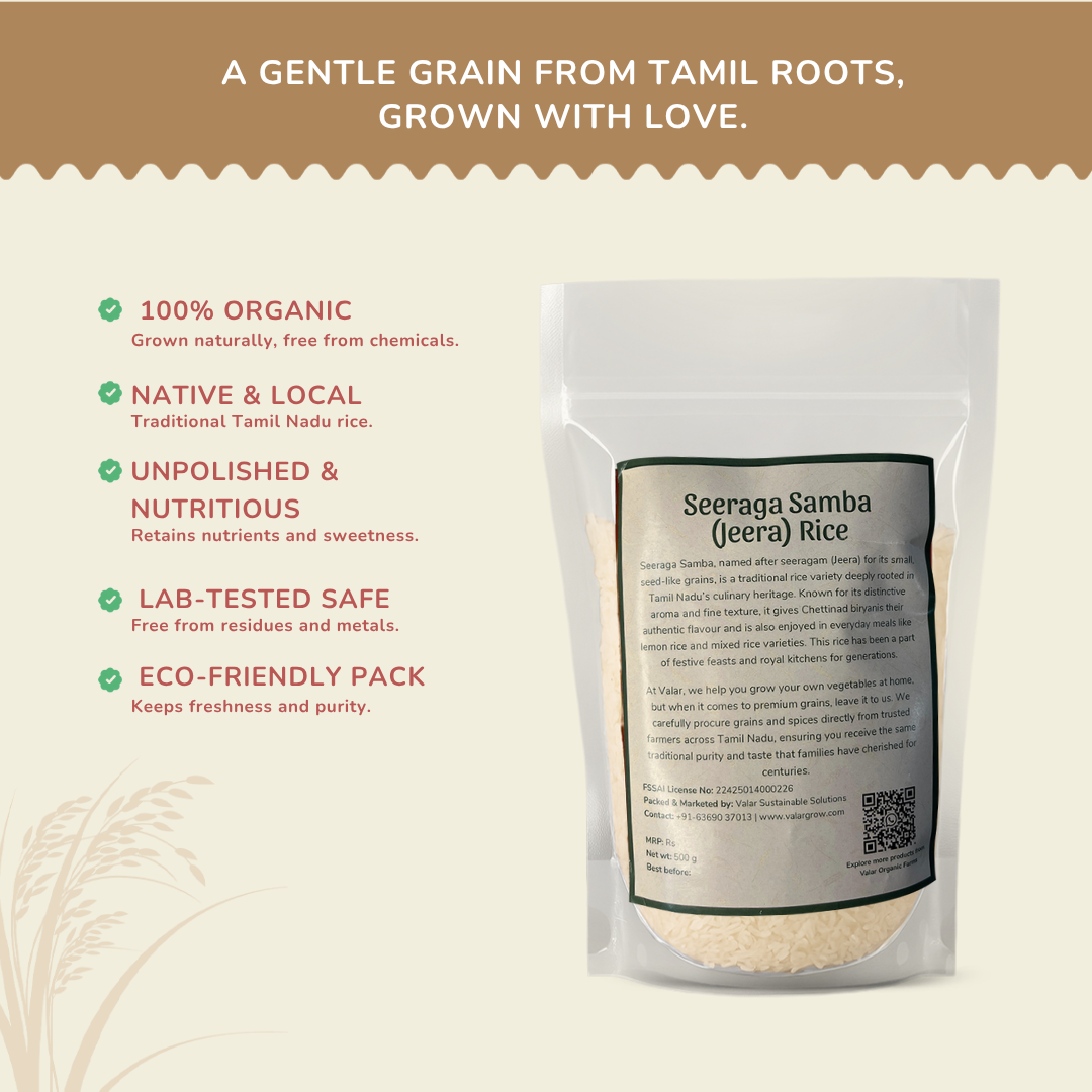 🍚 Valar Seeraga Samba Rice – 500g | Aromatic Short-Grain Rice of Tamil Nadu 🌾 | Biryani Perfection.