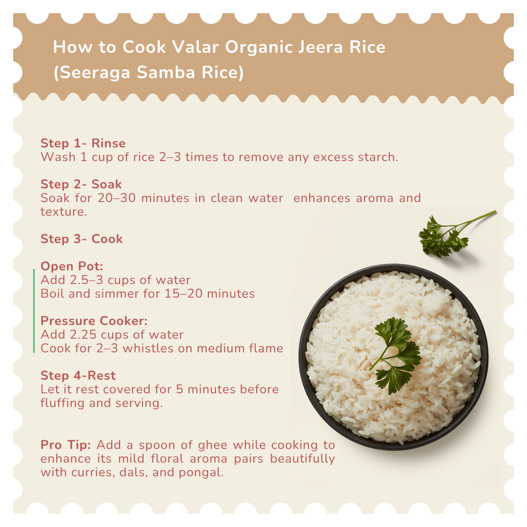 - 🌿 Royal Heritage Grain! Traditionally cherished in Chettinad cuisine, Seeraga Samba is a fragrant, short-grain rice with deep roots in Tamil Nadu’s culinary legacy.